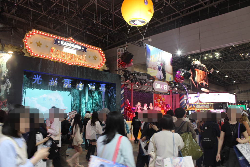 来場者の様子にも違いがあります。よりパターン化された動線に沿って移動することが多く、それをうまく案内するスタッフさんの対応も非常に洗練されていると感じました。もし初めてアニメイベントに参加する友人がいたら、こういうところに注目してみるといいよと、言ってあげたいくらいです。