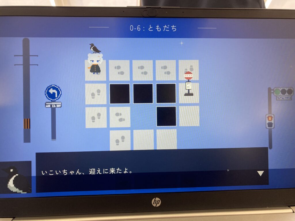 一つ特筆すべきは、単に道を見つけることがこのゲームの目的ではないということです。より正確には「正しい道」を見つけなければならないのです。主人公の少女は常に目的地に最も近いルートでタイル上を歩いていくため、間違った目的地を避けたり、仲間のカラスを連れて行ったりするなど、一見単純な構造でも、それ以上の目的意識を持ってプレイしなければならないゲームでした。