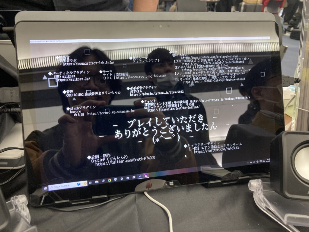 最も印象的だったのは、開発者との会話で聞いたこのゲームがティラノビルダーで作られたという点です。もちろん、ティラノスクリプトを直接編集する必要はあるとのことです。先ほど述べたノベルゲームコレクションで公開されたという言葉で既に察している方もいるかもしれませんが、個人的にティラノビルダーをあまり経験したことがない立場だったので、こんなゲームを作れるというのは正直ショックでした。