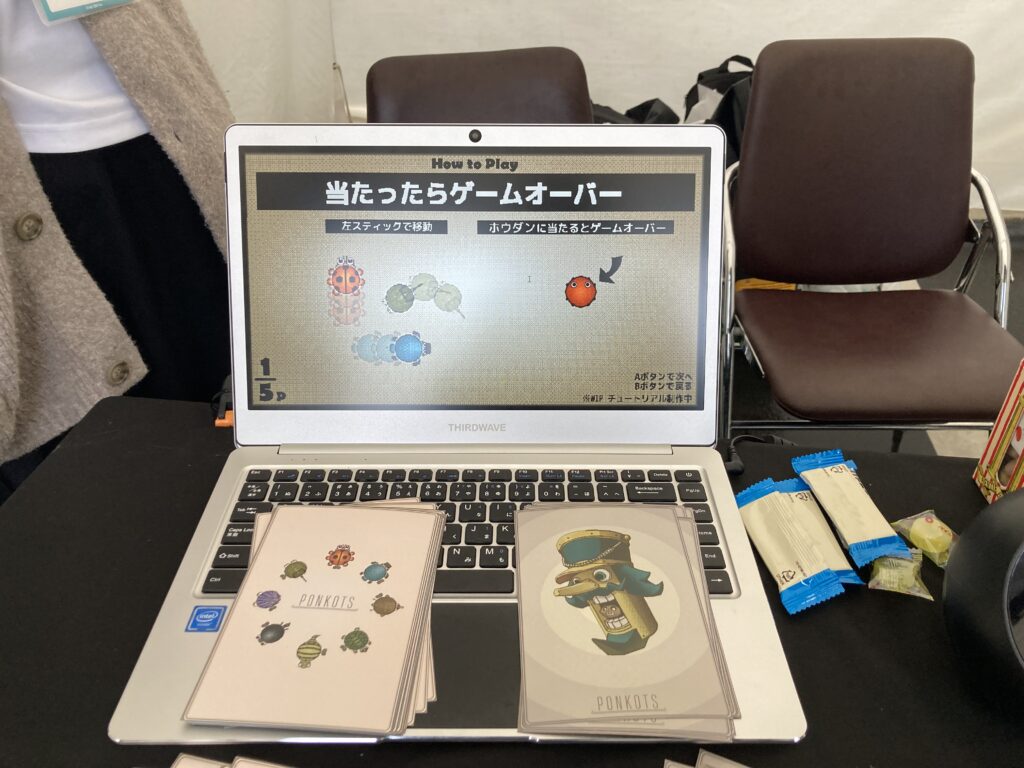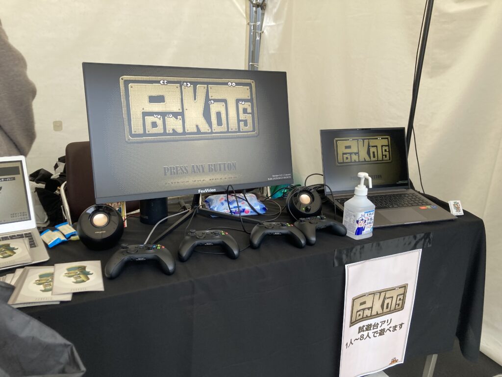 さて、今回のレポートで紹介する最後のゲームであり、そしてこの雨の川越 GAME DIGGで、個人的に一番「面白い!」と感じ、そして一番大声で叫びながらプレイしたのが、この『PONKOTS』です。もう名前からして、ただならぬ「何か」が起こりそうな予感がしますね。