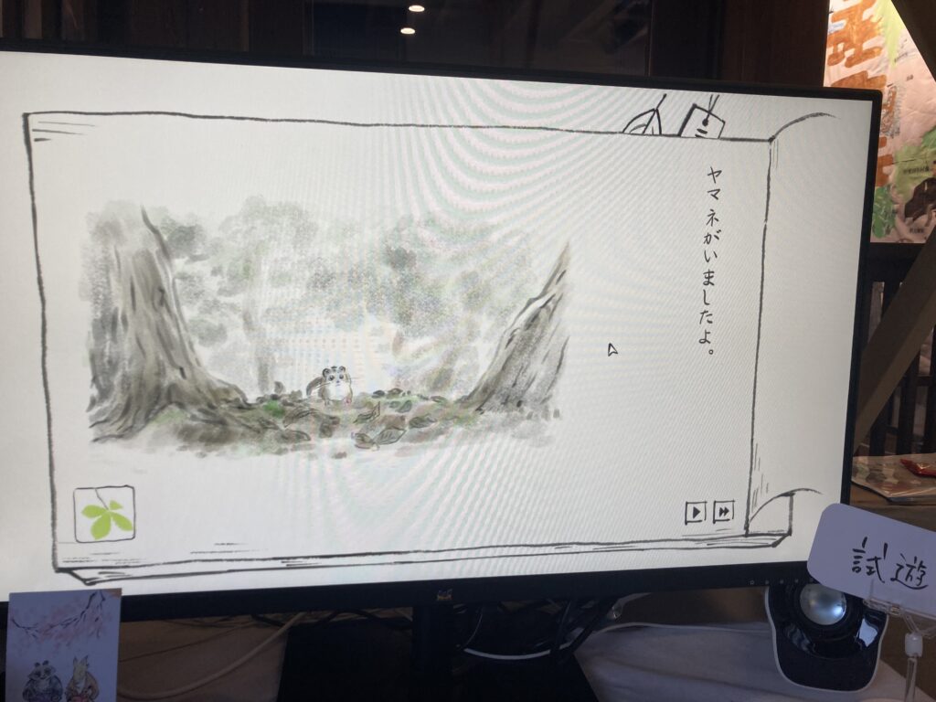 『MeloMisterio』の美しい音色の余韻に浸りながら会場を歩いていると、まるで導かれるように次なる素敵な作品、『里山のおと 春さんぽ』と出会いました。プレイしてまず強く感じたのは、「もしかして、この川越 GAME DIGGというイベントのために作られたのでは?」と思えるほど、会場の雰囲気、そして当日のしっとりとした雨模様に、驚くほど自然に溶け込んでいたことです。大げさではなく、周りのブースからも「このゲーム、すごく雰囲気に合ってるよね」という会話が聞こえてきたほどだったので。