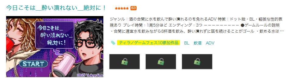 イベントで様々なゲームに触れるたびに思うのですが、「ただ面白いゲーム」と「語りたくなるゲーム」というのは、似ているようで少し違うのかもしれません。本作はまさに後者で、プレイヤーそれぞれがキャラクターたちの何気ない一言や行動から異なる感情を読み取り、それを誰かと共有したくなる…そんな「余白」を持った作品だと感じました。開発者の街八ちよさんによれば、なんと今後の新作も無料で公開予定とのこと。この記事を読んで少しでも気になった方は、ぜひ一度、有馬くんと辰巳くんの宅飲みに付き合ってみてはいかがでしょうか。