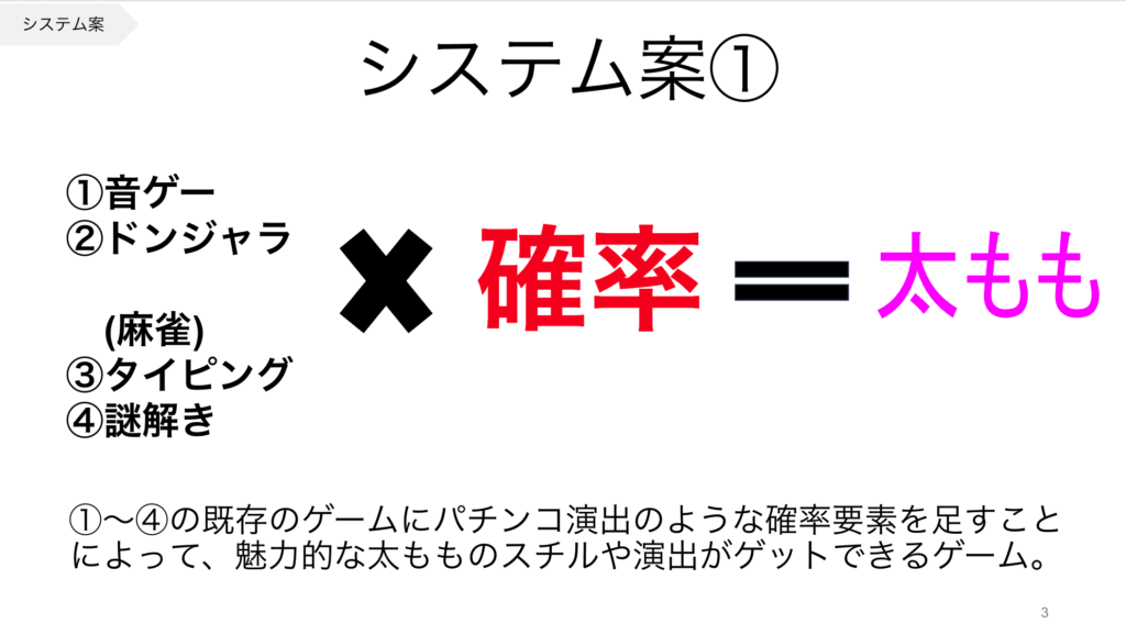 現在制作中の「ももっとクラッシュ」の初期スケッチの一部。音ゲー✖️確率=太もも???? こういうタイトルごとの企画開発の履歴は、また別の機会にまとめたいと思います!