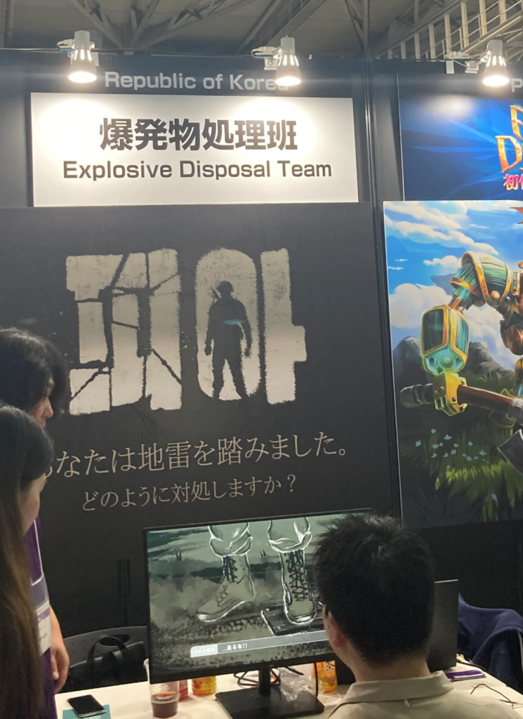 今回、TGSで一番注目されたといってもいいブースの一つですね。戦争時代、地雷を踏んでしまった主人公が地雷を解除するというゲームでした。爆発物処理班というチームの『PIA』、ブースはセレクトインディーのA08。