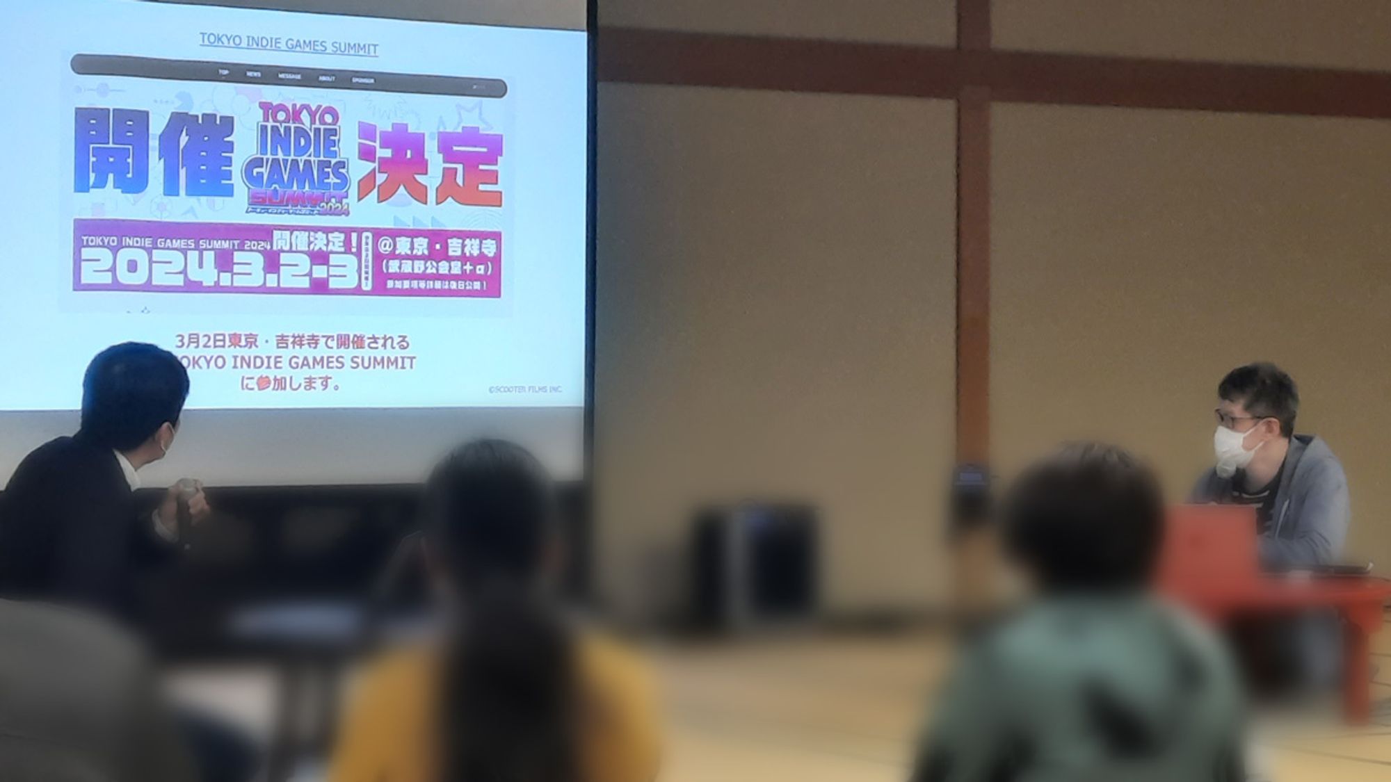 アニメ業界があって、ゲーム業界があって、インティゲームがあって、インディーアニメは実は結構ちょっと一体化してまして。インディーアニメのクリエイターとゲームを作ろう、というのはまだあまりないんですけど、今後うまく文化を混ぜていけないかなっていうのは、ちょっと思って立ち上げたようなとこもあります。これがうまくいけば、もっとやっていきたいなというところもあります。インディーと呼ばれるところはちょっとカオスな状況で、希望の光が少しキラッと見えてきてるような気もするし、そんな2、3年だったということです。
