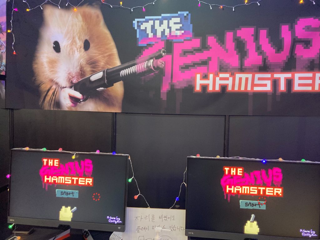81番ブースの一人開発者「GuiltyZun」が手掛ける『The Genius Hamster』は、ハムスターと銃とパズル、この三つの要素で的確に表現できる独特なアクションパズルゲームです。