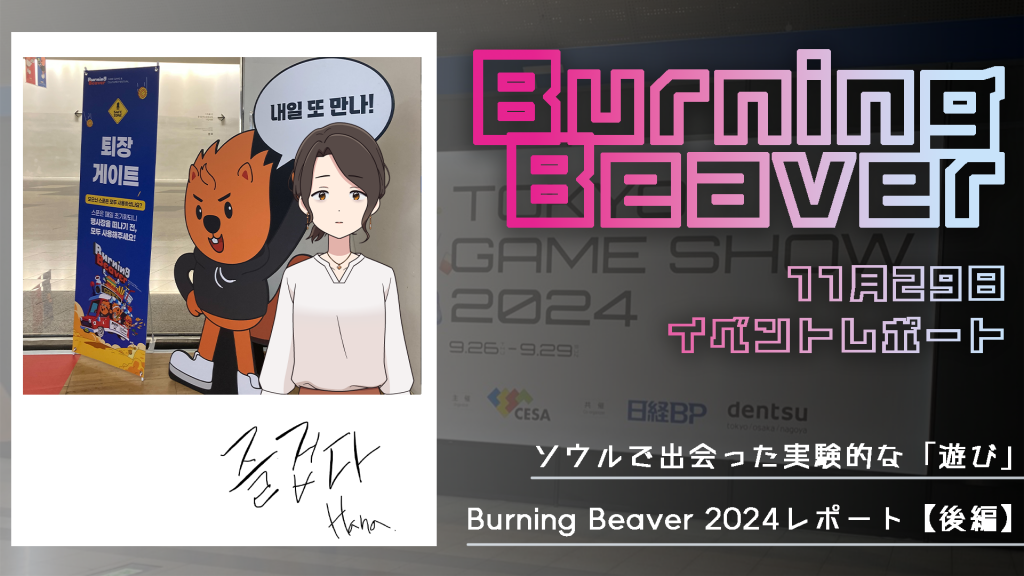 こんにちは、イ・ハナと申します。今回は前編に続き、Burning Beaver 2024という韓国のインディーゲームイベントについてお話させていただきたいと思っております。